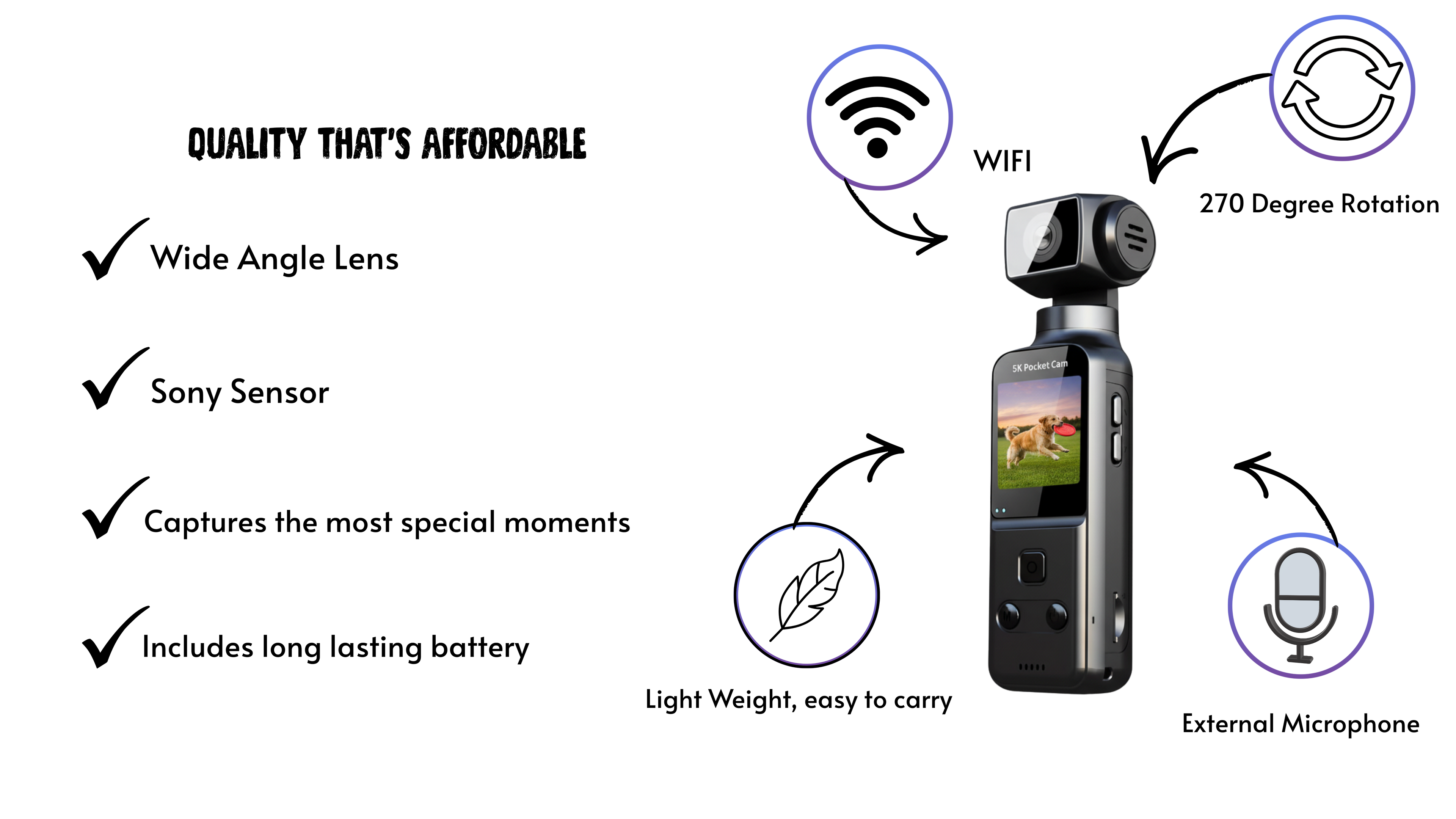 4K/5K Mini Body Cam with External Mic & 270° Rotating Lens